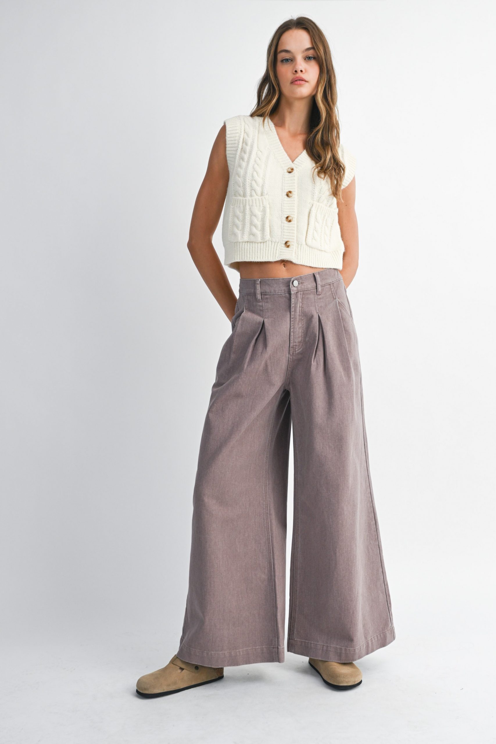 Pantalon Ecru Pinzas Wide Legs
