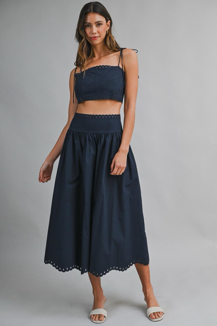 Set top y falda navy con encaje parte de abajo
