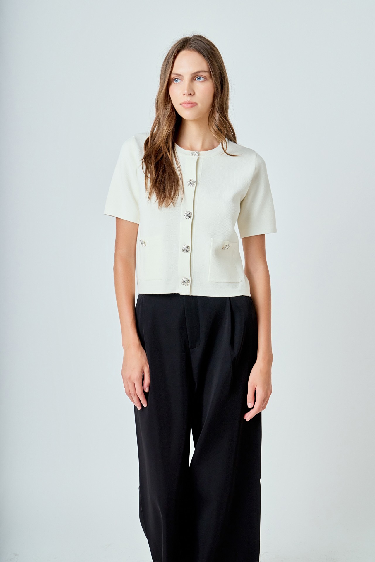 Sweater manga corta con botones brillantes